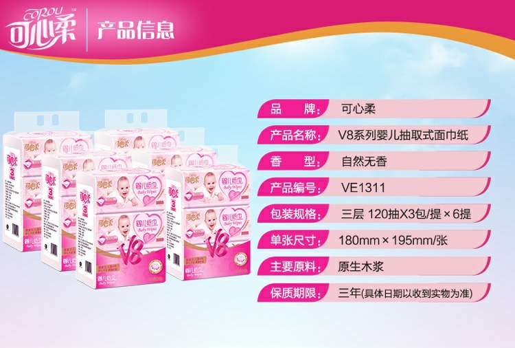 可心柔 V8系列CoRou云柔系列白色木浆110抽