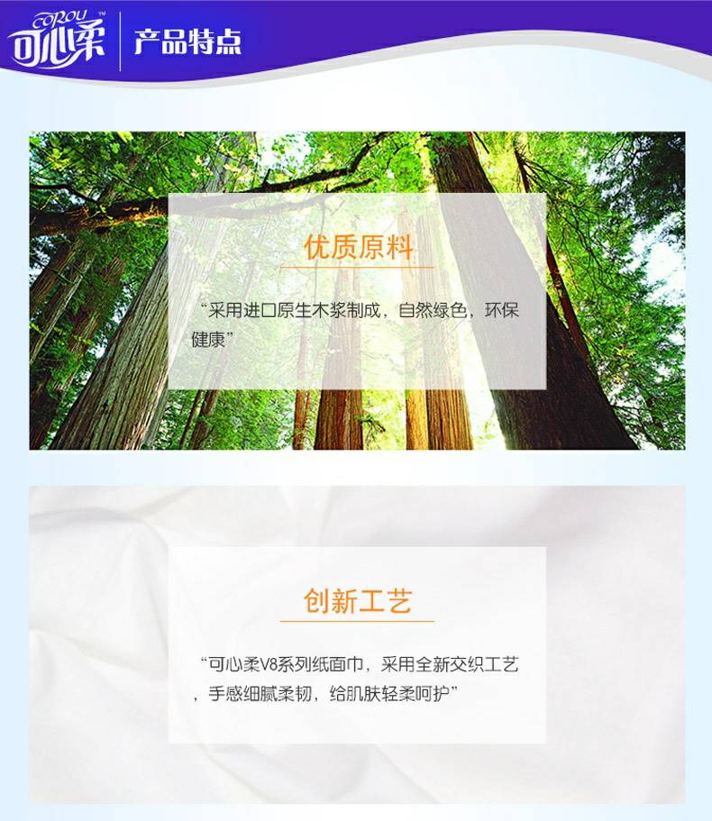 可心柔 V8系列CoRou云柔系列白色木浆60抽